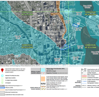 Visit : https://msc.fema.gov/portal/search to learn more about areas that fall within the varying flood lines.
