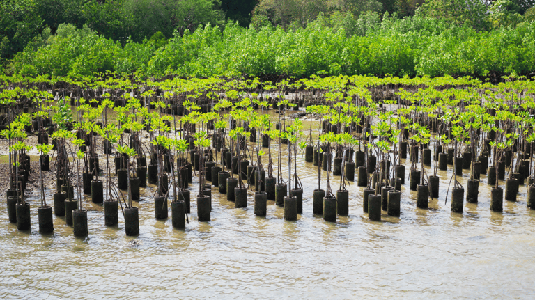 Satellites identify coastal spots where planting mangroves will protect shorelines and store the most carbon.